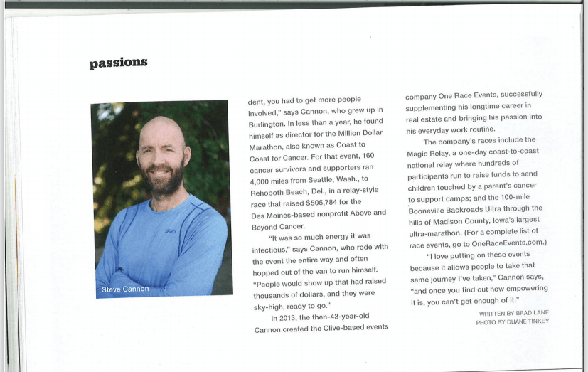 Reaching out through LinkedIn, I made contact with the editor of the Des Moines bi-monthly DSM Magazine. After penning an article about my adventure friend, Steve Cannon, I authored another article about three unique men who were going the extra mile in life.